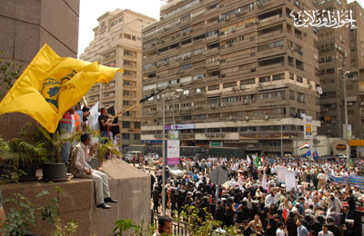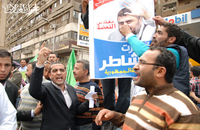 وردَّد المتظاهرون شعارات منها: "هي لله هي لله.. لا للمنصب ولا للجاه"، و"دي رسالة تحذير.. لو حصل تزوير"، و"الشاطر وأبو إسماعيل.. يد واحدة" و"الإخوان والسلفيين.. هما اثنين متحدين".