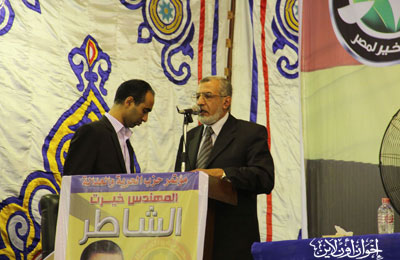 المهندس الشاطر يحيي الحضور |