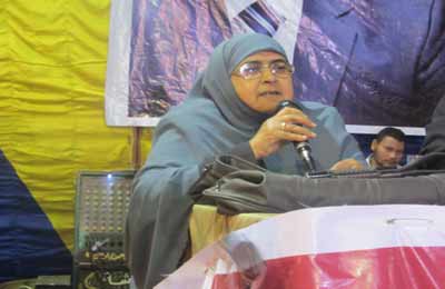 ودعت الحضور للمحافظة على الثورة، مؤكدةً أنها على ثقة بوقوف الشعب المصري خلف د. محمد مرسي، وتابعت: يجب أن يتعاون الجميع كي ترسو السفينة على بر الأمان.
