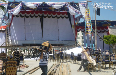 وقال محمد القطاوي، مسئول حملة "مرسي رئيسًا" بدمياط، أنه يتم تجهيز مكان المؤتمر، وتعليق اللافتات الدعائية، وكذلك الاستعداد لفعاليات المؤتمر، كما تمَّ تجهيز أكثر من 5 آلاف كرسي في مكان المؤتمر، وتجهيز "شادر" يسع لأكثر من 20 آلاف مواطن.