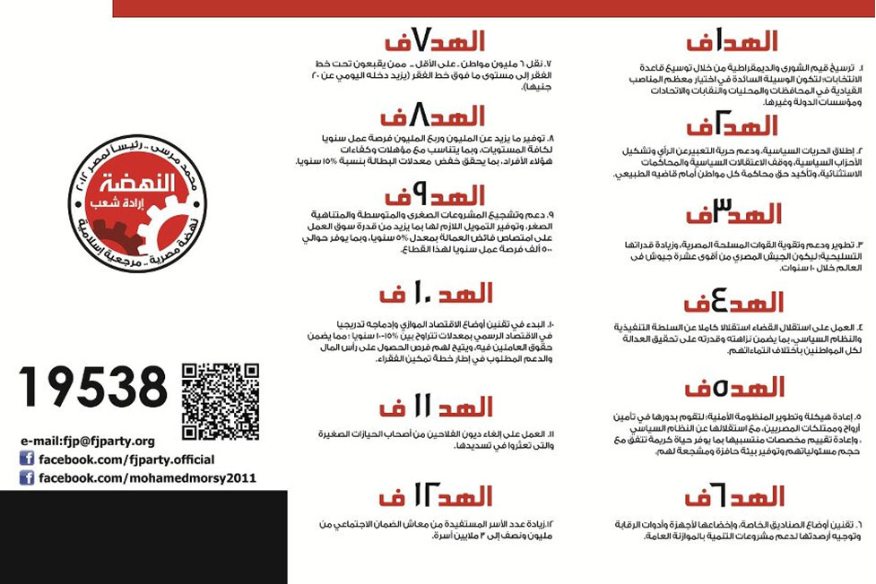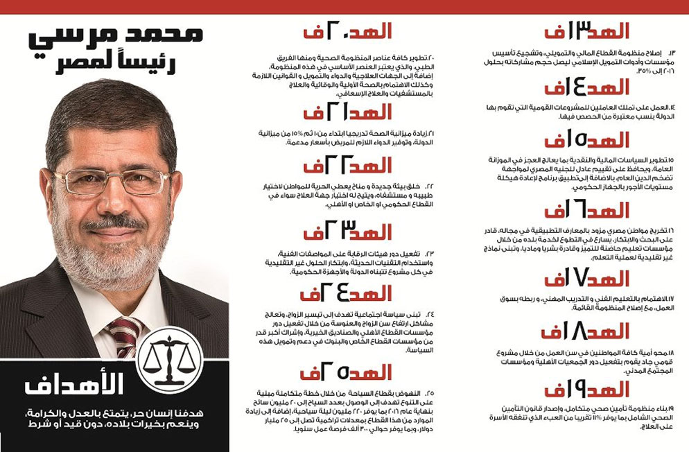 أعلنت حملة دعم الدكتور "مرسي رئيسًا" عن 25 هدفًا من ترشح د. محمد مرسي لرئاسة الجمهورية.