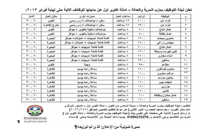 وفي مدينة السادس من أكتوبر استطاع حزب الحرية والعدالة توفير مئات الوظائف للشباب الراغبين بالعمل، وتم عمل إعلان تم توزيعه وتعليقه بمعظم أرجاء المدينة يضم الوظائف المطلوبة وعدد ساعات العمل وكذلك الراتب ومكان العمل.