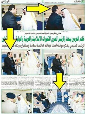 نشرت صحيفة "الرياض" السعودية صورًا لملك السعودية مع قائد الانقلاب عبد الفتاح السيسي، والتي يظهر فيها مدى الذل والمهانة التي تعرض لها السفاح ووزراء الانقلاب الذين معه في اللقاء الذي جمعهم في الطائرة الخاصة بالملك .