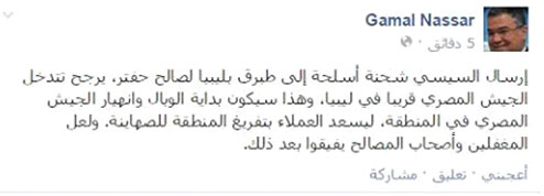 وأضاف على "فيس بوك": "هذا سيكون بداية الوبال وانهيار الجيش المصري في المنطقة، ليسعد العملاء بتفريغ المنطقة للصهاينة، ولعل المغفلين وأصحاب المصالح يفيقوا بعد ذلك".