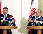 وفي ذات الشأن أجرى وزير الخارجية التركي عبد الله جول محادثات مع نظيره الإيراني مانوشهر مُتقي في طهران يوم أمس الأحد 25 من يونيو 2006م، وعقب المحادثات قال مُتقي ردًّا على سؤال عن تعليق تخصيب اليورانيوم "هذه المسألة يجب أن تحل بطريقة سلمية وسياسية"، مُشيرًا إلى أن "هذا الحل السياسي يجب أن يصبَّ في مصلحة كل الأطراف".