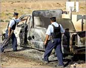آثار سيارة دمرت في كركوك بانفجار قنبلة على قارعة الطريق