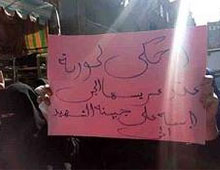 رفع المشيعون صور الشهيد، وشارات رابعة الصمود، ولافتات  " قتلانا في الجنة وقتلاهم في جهنم.. احكي لحورية عن عريسها الجي.. مكتوب على جبينه الشهيد الحي"، مرددين هتافات "يا شهيد ارتاح ارتاح.. واحنا نكمل الكفاح.. سامع أم شهيد بتنادي.. مين هيجيب حق ولادي.. لا يا أمي أقسم بالله.. يا نجيب حقة يا أما معاه".