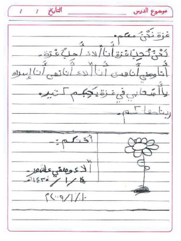 لقد أوصتني آلاء- بعدما وجَّهتُها فقط إلى كتابة التاريخ الهجري- أن أُبلِّغ رسالتها أطفال غزة، وقالت: "هاجي معاك يا بابا، وهاخد معايا إزازة مية عشان أسقيهم".