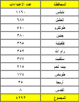 الاعتداءات حسب محافظات الضفة المحتلة:
