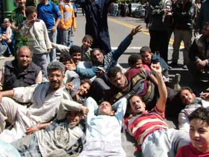 المتضررون يفترشون الأرض أمام مجلس الشعب للمطالبة بسكن لهم