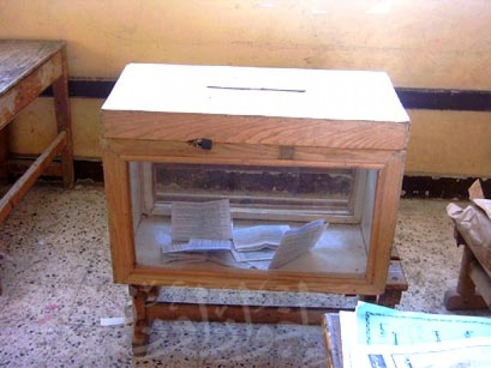 صندوق انتخابي بإحدى لجان مدرسة الوحدة ويبدو شبه خال من أوراق التصويت