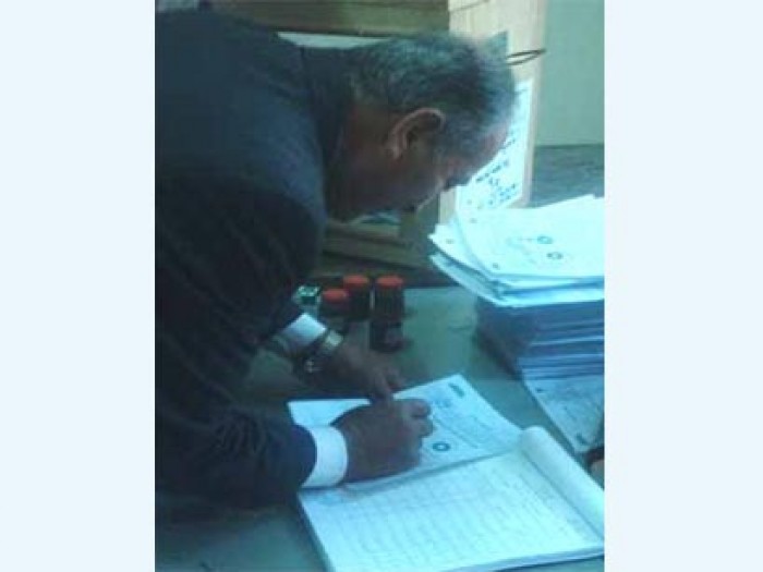 موظف بلجنة انتخابية في دمياط وبجواره كومة من البطاقات المسودة!!