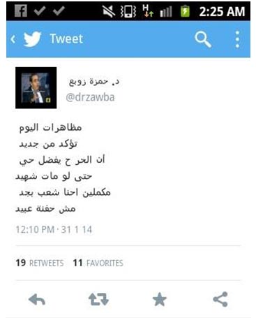 ووجه رسالة إلى أحرار مصر: "مكملين.. إحنا شعب بجد مش حفنة عبيد".
