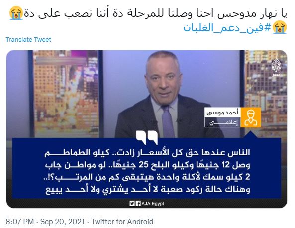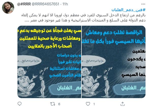 وقارن احمد السيد الدندراوي @pH2bkvHD99i9oIG بين مصر ودول أخرى فكتب "الدعم الموجود في دول العالم التي تقوم على الرأسمالية و السوق الحر  حماية للشعب من مفاهيم العبودية الدونية و هذا غير موجود في مصر عن عمد و قصد ".