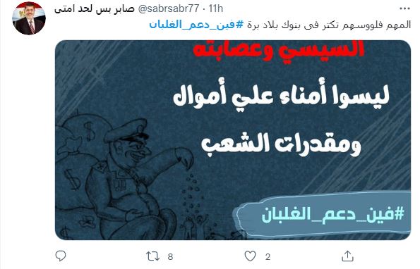 دشن نشطاء على مواقع التواصل الاجتماعي "تويتر" هاشتاج #فين_دعم_الغلبان بعد ضياع 30 % من المصريين الفقراء (بحسب الجهاز المركزي للإحصاء) بغياب علامات الإصلاح الاقتصادي والذي له طرق واضحة بخلاف ما يفعله قائد الانقلاب وعصابته فضلا عن أوجه الانفاق البذخي على القصور الفاخرة والطائرات الفخمة في وقت يبحث فيه السيسي ووزرائه رفع الدعم عن رغيف الغلابة.