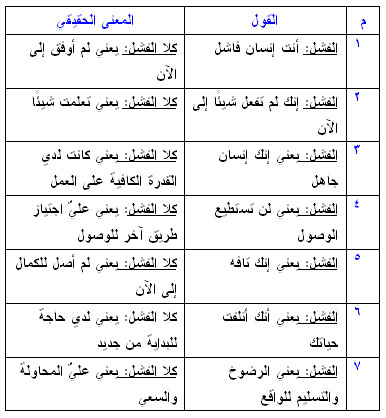 وبذلك نبتعد عن مظاهر الفشل وهي: